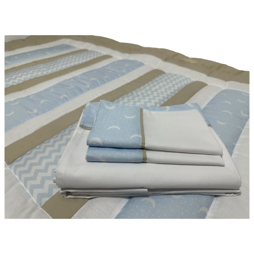 Nuestros hermosos ajuares de cuna, crearán un espacio cómodo y seguro para que tu bebé descanse toda la noche. Procuramos crear diseños en tonos que ayuden al descanso de tu bebé. Todos nuestros ajuares de cuna incluyen:
